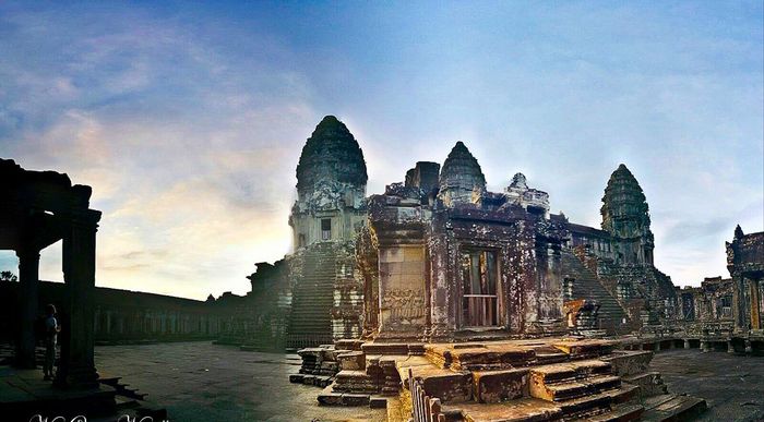 Встреча заката на вершине Phnom Bakheng с видом на храмы Ангкора.